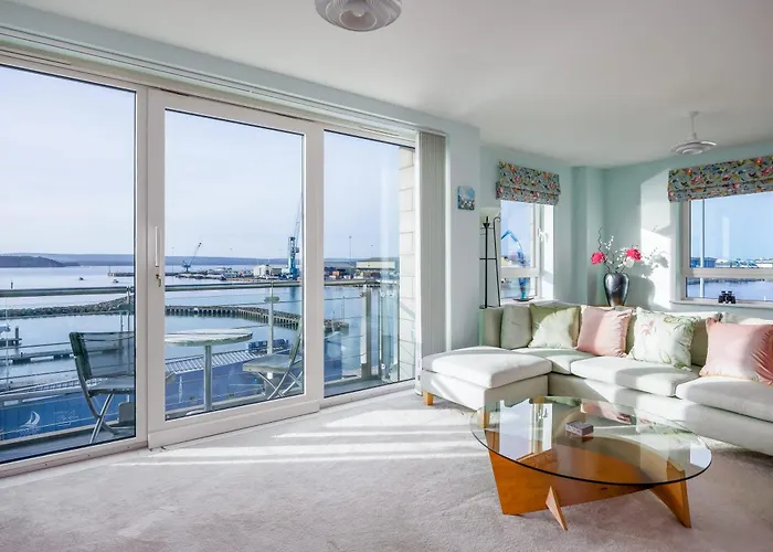 Staying at the spacious Marina Vista - Waterfront Views Towards Brownsea Island And The Purbecks Apartment Poole, guests can relax on a patio about a 25-minute walk from the Brownsea Island Scout Camp. This apartment is situated 6 km from Branksome train station and in the immediate vicinity of Dolphin Quays bus station.